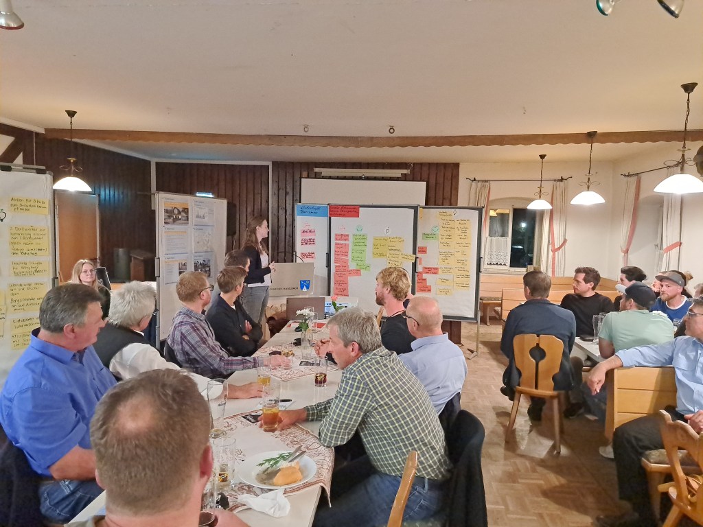 Im zweiten Teil der Veranstaltung waren dann die Teilnehmer gefragt, ihre Kritikpunkte und Anregungen vorzubringen. Rund um vier thematisch gegliederte Stationen bildeten sich schnell im ganzen Saal größere und kleinere Diskussionsrunden, in denen Bürgermeister, Gemeinderäte und interessierte Bürger von der Landjugend bis zum Seniorenclub angeregt diskutierten und fachsimpelten.